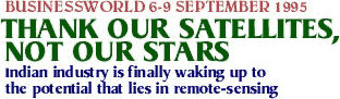 When Tata Chemicals wanted to set up a soda ash plant in the Jamnagar area of Gujarat,engineers needed some basic information: where to find limestone, an essential ingiredient in the manufacture of soda ash; potential sources of water, which the manufacturing process required; and the soil condition of the region. Conventional means of surveying to achieve these objectives would have meant untold hours of field work. Collecting soil and data samples is a tedious and expensive process. The alternative: take a look at the region from above. The company hired Indian Resources information & Management Technologies (IN-RIMT), a Hyderabad-based firm that uses sateflite-generated data to study natural resources and the environment. IN-RIMT is one of a slew of Indian firms that is making the best of remote sensing, a well -developed but little-used resource, to benefit industry. To the unaided human eye, the earth is a featureless eye in space. But sensors on orbiting satellites can detect not only physical features but all that makes up those features. That's a great help to many. Fishermen along India's coastline have been the beneficiaries of satellite data that have helped them zero in on fish. Cameras on Indian remote-sensing (IRS) satellites do this by sensing the colour, turbidity and flotsam changes in sea water. For years, IRS satellites of the Department of Space (DoS) have been scanning the subcontinent, compiling voluminous data on the country's features and natural resources. But it's only now that Indian industry is waking up to the potentialoithe remote-sensing programme. 'Remote sensing is a tool that is just beginning to be exploited for a variety of applications,' says D.V Raju, managing director of Susee Spacetek, a manufacturer of electronic equipment used in Remote Sensing. After 24 years with the DoS, Raju, who set up a firm to exploit India's Remote-Sensing capabilities cornmerdafly, should know. 'From siinulators, which test the accuracy of ground station, to equipments that help decode. signals from satellite cameras, all the equipment that vve manufacture are based on technology transferred from the National Remote Sensing Agency (NRSA),'he says. Ever since the first remote-sensing satellite, Landsat, was launched by the US in the early seventies, to pan the planet from its orbit and photograph the earth, remote sensing has spawned an industry of its own, which deals only in data and information gleaned from the satellite images. There are two distinct trends in the nascent commercialisation of India's remote-sensing programme. nbere are the spinoff opportunities to set up consultancy and manufacturing units,' says Y.S. Rajan, an advisor in the department of science & technology. The other trend is in the applications, which are growing in a variety of fields: m The National T'hermal Power Corp conunissioned a remote-sensing study, together with conventional means, to gauge pollution of surface water and ground water front a fly-ash pond at the Rarnagundam super thermal station in Andhra Pradesh. a Feasibility studies for the proposed 12,000 km nationwide Super National ltghway Project will extensively use remote sensing to decide where to build the newhighways. a Beflary Steels & Alloys in Karnataka used remote-sensing data when officials wanted to find more water for production; the study found water could be drawn from borewells and a check dam with the plant premises. M/S Tata Consulting Engineers (TCE) is using it to see if there's enough ground water for the proposed information technology park in Bangalore. It is time industry realised the utility of remote sensing,' says N. Srinivasan, director at the Confederation of Indian Industry (.CH), which together with the Indian Space Research Organisation (Isro) and the NRSA conducted a seminar to explore how best this could be achieved. One prominent example is the case of Reliance Industries, which was in search of location-specific information for its proposed refinery on the coastal belt of Gujarat. More than the feasibility of the project, the fine needed to know about the refineries envirornnental impact. To do this, scientists first needed to know the region's layout and topography. Then, they needed to study the population spread and vegetation, including forest cover, and ground water supplies. 'We undertook to do it,'says Dr. Subba Rao Pavuluri, IN-RIMT's managing director. 'We study the satellite photographs, interpret them and then carry out field tests to verify the facts. Data from the NRSA can be interpreted according to the client's needs,' says Rao. Though estimates of the current market size are hard to come by, K. Kasturi rangan, chairman of Isro, predicts a 5.1 billion (Rs. 3,100crore) industry for the commercial exploitation of remotesensing data in the next five years. There are three components to remote sensing: there's the satellite launch vehicle; the remote-sensing satellite that it carties aloft; and then there's the data that this satellite gathers. The first two are is.ro territory, it is the third that holds fascinating possibilities. 'The data and its spinoff technologies have enormous opportunities for entrepreneurial minds," says Rajan. Remotely-sensed data consists of digital images made up of discrete digital units, which hold the details of an object. They cannot be seen, but they can be handled quantitatively. And it is here that the need for expertise arises. Based on the statistical and interpretative tools applied, these units reveal a lot, for a remotely-sensed hnage is not a photograph in the conventional sense of the word. The individual picture elements, which are called pixels, have an intensity value, which varies with the electromagnetic radiation that falls on it from the earth's surface. Different objects on the earth's surface reflect these waves in varying degrees of intensity. In doing so vegetation, soil, water, and urban areas stamp their signatures on the sensor.